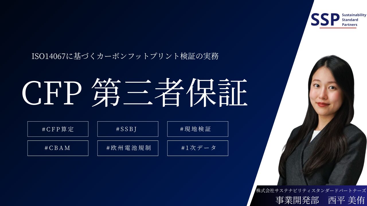 株式会社サステナビリティスタンダードパートナーズ(以下、SSP)は、製品のカーボンフットプリント(CFP)算定と信頼性向上の重要性について解説するセミナーを開催します。